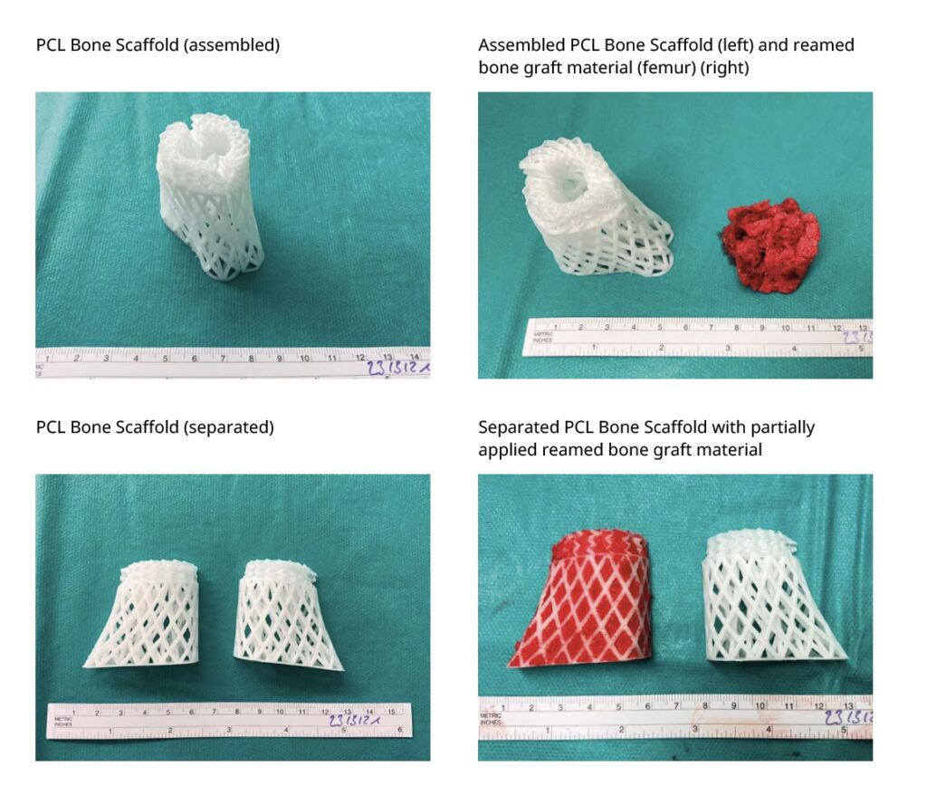 Para que un andamio sea eficaz, debe poseer características específicas como biocompatibilidad, degradabilidad controlada, propiedades mecánicas adecuadas y una estructura porosa que permita la migración celular y el transporte de nutrientes. La fabricación de andamios óseos requiere técnicas especializadas y materiales innovadores. Entre los métodos de fabricación más utilizados se encuentran la gasificación, el moldeo por solvente/lixiviación de partículas, la separación de fases, la liofilización, la liofilización por emulsión, el electrohilado, la lixiviación de porógenos, la unión de fibras, el uso de espaciadores y, de manera destacada, las técnicas de impresión 3D.