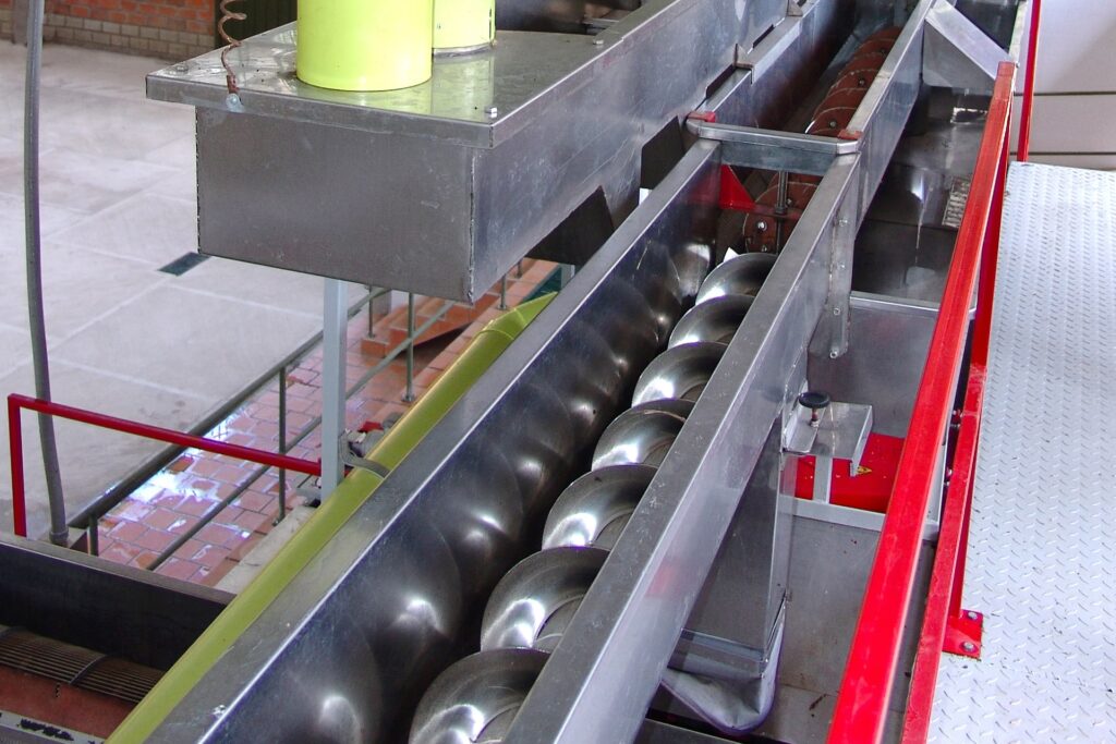 - Industria Alimentaria y de Bebidas: Su higiene y resistencia a la corrosión lo hacen indispensable para tanques de almacenamiento, tuberías, equipos de procesamiento y, por supuesto, cintas transportadoras. Por ejemplo, en una línea de empaque donde una caja llena se desliza hacia una cinta transportadora, el acero inoxidable asegura que no haya contaminación, es fácil de limpiar y soporta el uso continuo sin corroerse, garantizando la seguridad alimentaria y la eficiencia operativa.