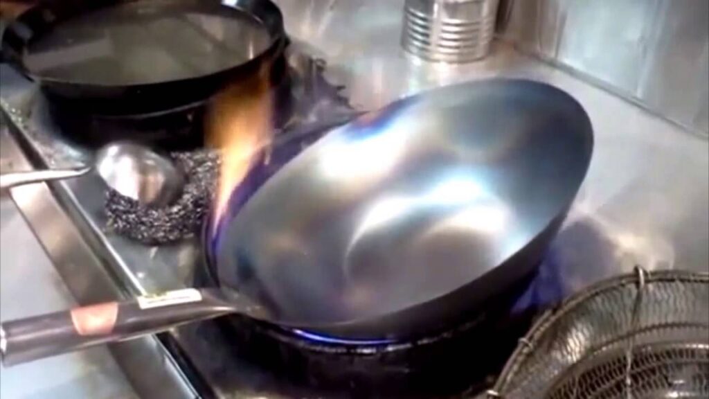 Este método es ideal para woks con mangos de madera o plástico que no pueden soportar las altas temperaturas del horno. Requiere buena ventilación, ya que generará bastante humo.