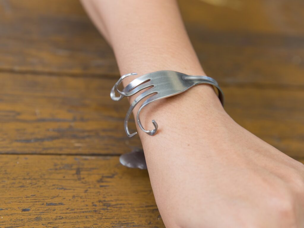 - Acabado y Pulido: Una vez que la estructura del brazalete esté completa, es hora de refinarla. Usa limas para eliminar cualquier borde áspero o rebaba. Luego, procede con el papel de lija de grano fino para suavizar la superficie. Finalmente, utiliza un paño de pulido para darle al brazalete su brillo característico. Para un pulido profesional, algunos recurren a pulidoras rotativas con compuestos de pulido específicos para acero inoxidable.