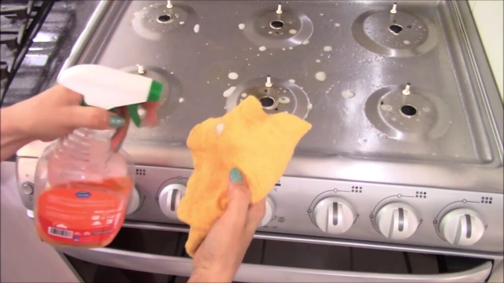 - Aplicación: Rocía generosamente la superficie de la estufa con el vinagre.