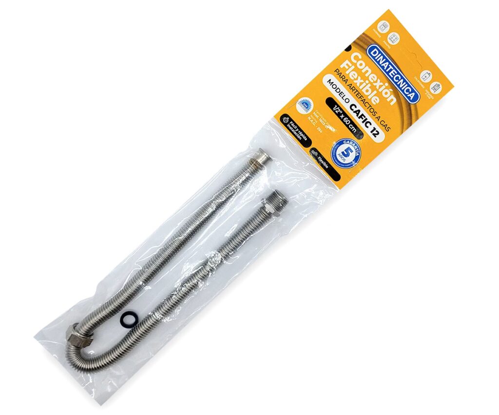 DINATECNICA ha incorporado a su línea de productos de agua, las conexiones flexibles para agua malladas con Acero Inoxidable en los diámetros de ½” y ¾”, con un amplio surtido de longitudes que van desde los 20 cm a los 50 cm de largo.