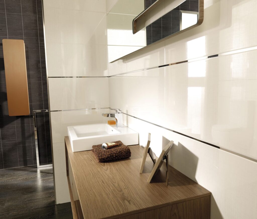 | Materiales | Azulejos de gran formato, superficies reflectantes (mármol, cuarzo), espejos grandes | Menos líneas de lechada, reflejan la luz, amplían visualmente. | Azulejos pequeños con mucha lechada, superficies mates y oscuras. |