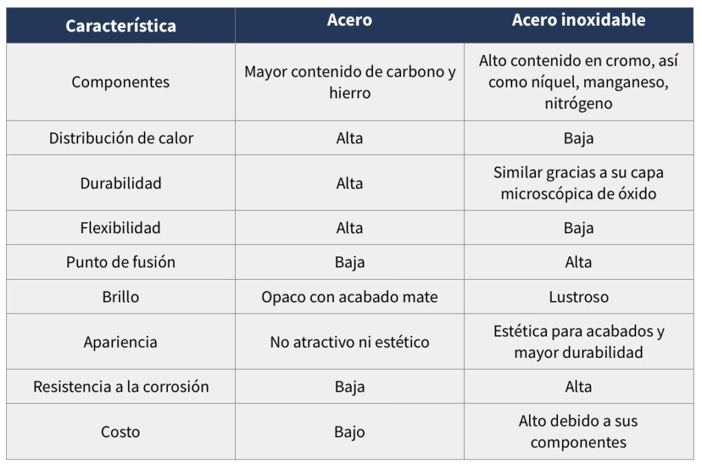 Tabla Comparativa: Acero Inoxidable vs. Hierro