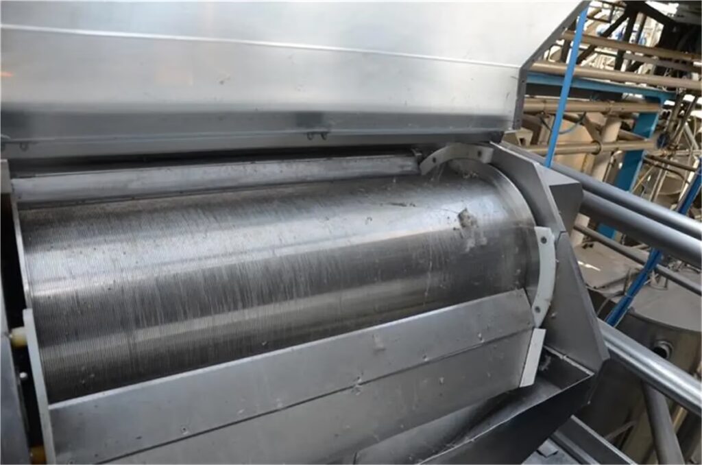 - Filtración: A medida que el tambor gira, el líquido pasa a través de las perforaciones o la malla de la criba de acero inoxidable. Las partículas sólidas, cuyo tamaño es mayor que las aberturas de la criba, son retenidas en la superficie del tambor. El líquido filtrado (el "efluente" o "filtrado") se recoge en una bandeja o canal inferior y se descarga para su posterior procesamiento o reutilización.