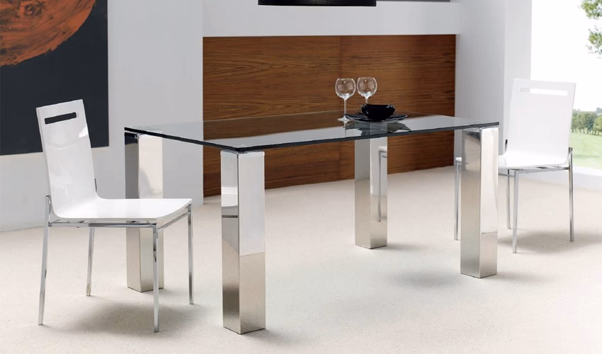 - Mesas de Cristal: Una mesa de comedor de cristal, ya sea redonda, rectangular, cuadrada o extensible, se beneficia enormemente de la ligereza visual y la modernidad que aportan las patas metálicas. El contraste entre la transparencia del cristal y la solidez del metal crea una pieza elegante y sofisticada.