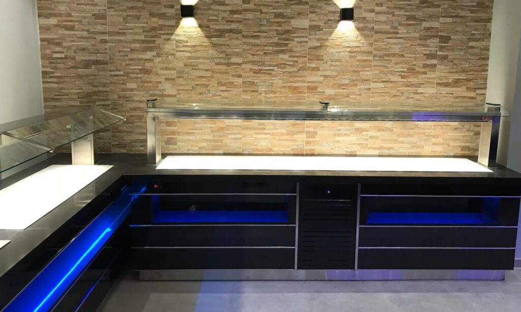 - Vitrinas Acristaladas de Acero Inoxidable: Comunes en bares, restaurantes y obradores, permiten exhibir productos perecederos (pasteles, embutidos, postres) en un entorno refrigerado y aislado, manteniendo su frescura y atractivo visual.
