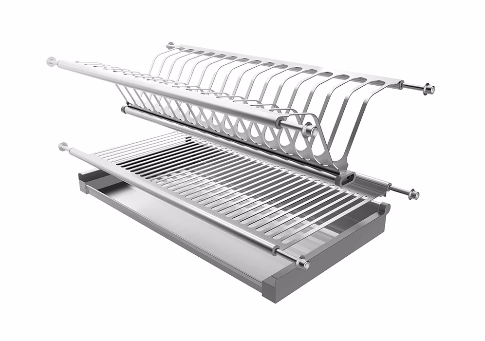 - Escurreplatos Extraíble de Acero Inoxidable: Este tipo se integra en un mueble o debajo de la encimera, y su diseño permite que se deslice hacia afuera cuando se necesita y se guarde discretamente cuando no está en uso. Son ideales para optimizar el espacio y mantener una apariencia de cocina despejada. Su mecanismo suave y robusto asegura una operación sencilla y duradera.