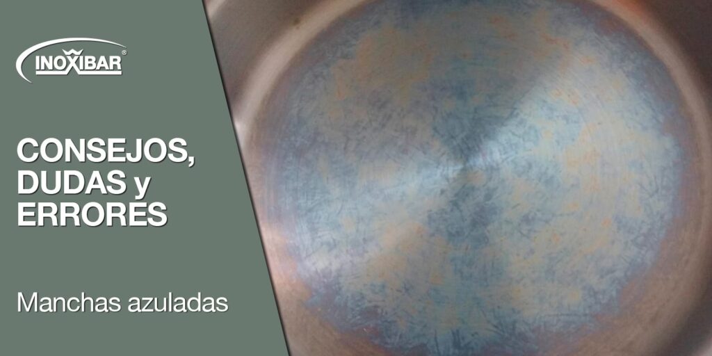 Estas manchas son causadas por el sobrecalentamiento y son inofensivas. Se pueden eliminar fácilmente frotando la sartén con un paño humedecido en vinagre blanco puro o una solución de agua y vinagre. Luego, enjuaga y seca bien.